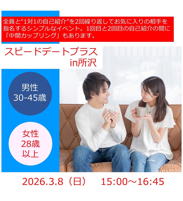 (主催 一般社団法人 日本結婚支援協会) 2026.03.8 スピードデートプラスin所沢