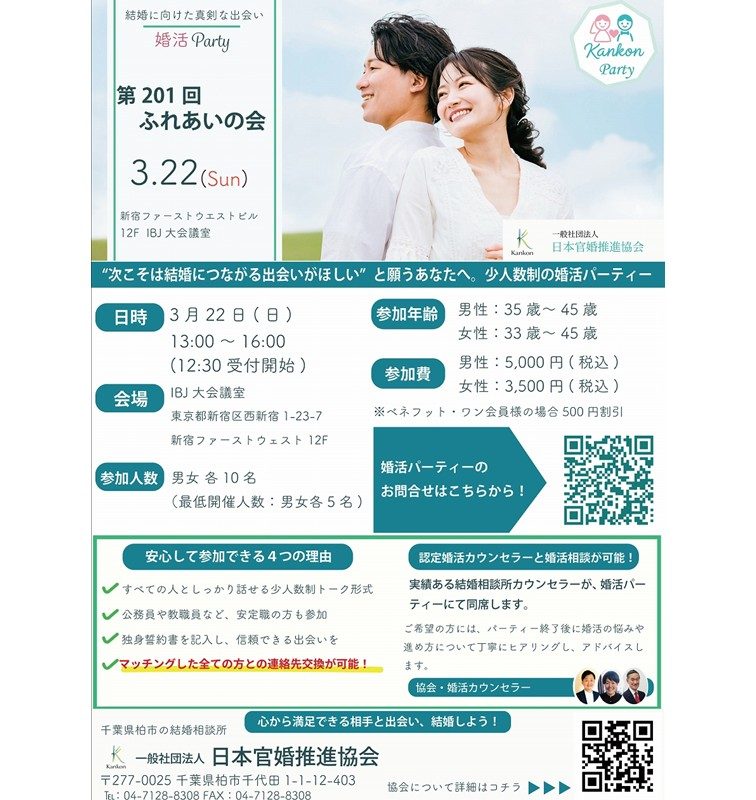 (主催 一般社団法人 日本官婚推進協会)第201回ふれあいの....