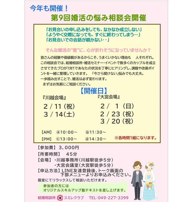 (主催:スミレクラブ) 第9回「婚活の悩み相談会」