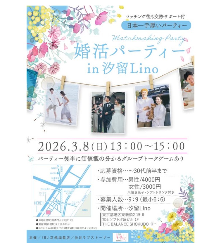 (主催 スミレクラブ)40才からの婚活「大人スミレわいがやサロン」スタート♡ 【川越】 令和8年3月20日(金・祝) ■全体説明会 スミレクラブ2階会議室 (川越駅徒歩5分) 〇終了後、懇親会会場に移動致します。