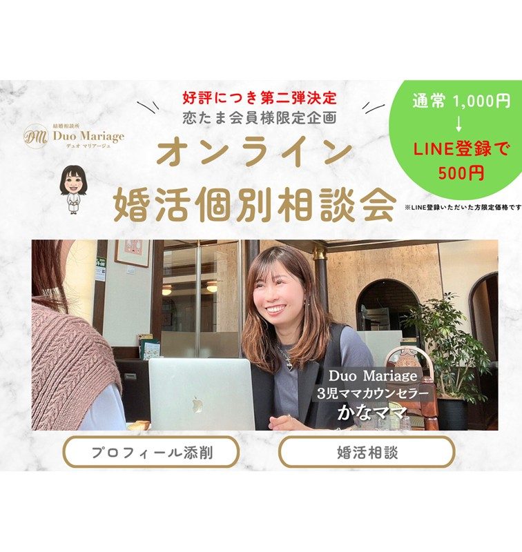 【大好評御礼 第二弾✨】恋たま会員限定 結婚相談所 Duo Mariageオンライン婚活プロフィール個別相談会