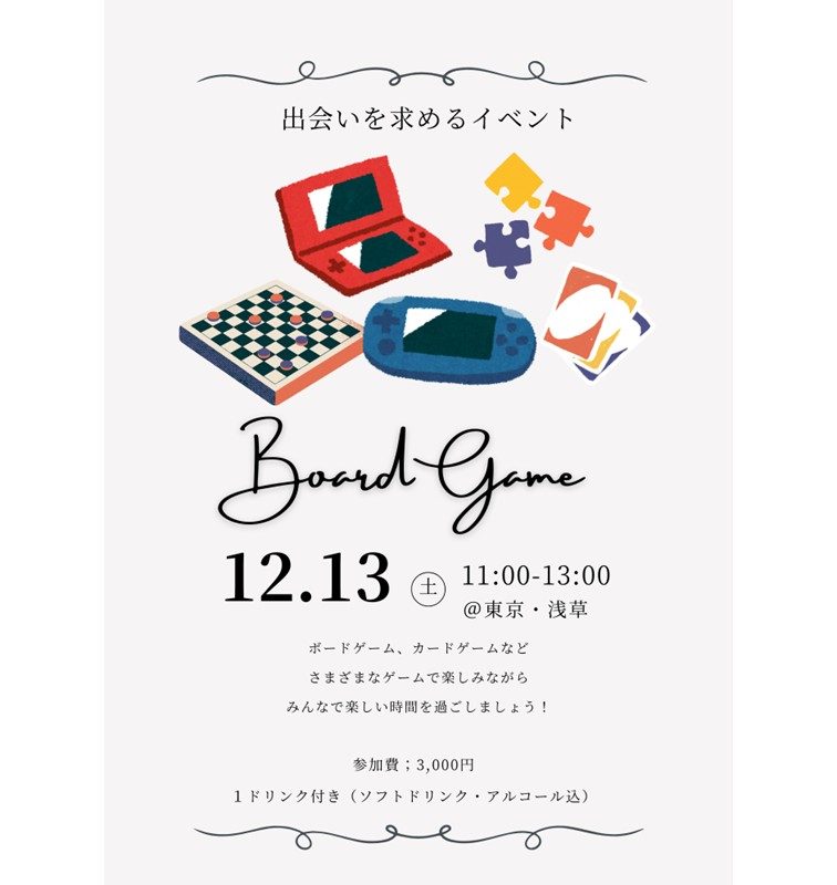 今年もいよいよ残りわずかです。ボードゲームを通して楽しくゲームしながら出会いを求めてみませんか